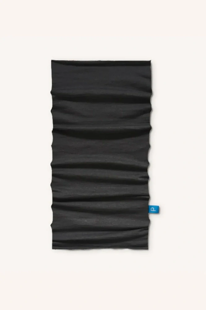Černý multifunkční nákrčník je ušitý z nejjemnějšího úpletu z merino vlny. Má mnohostranné využití, může být čepicí, kuklou, čelenkou nebo páskou na ruku. Pohodlně se vejde pod cyklistickou a lyžařskou přilbu.