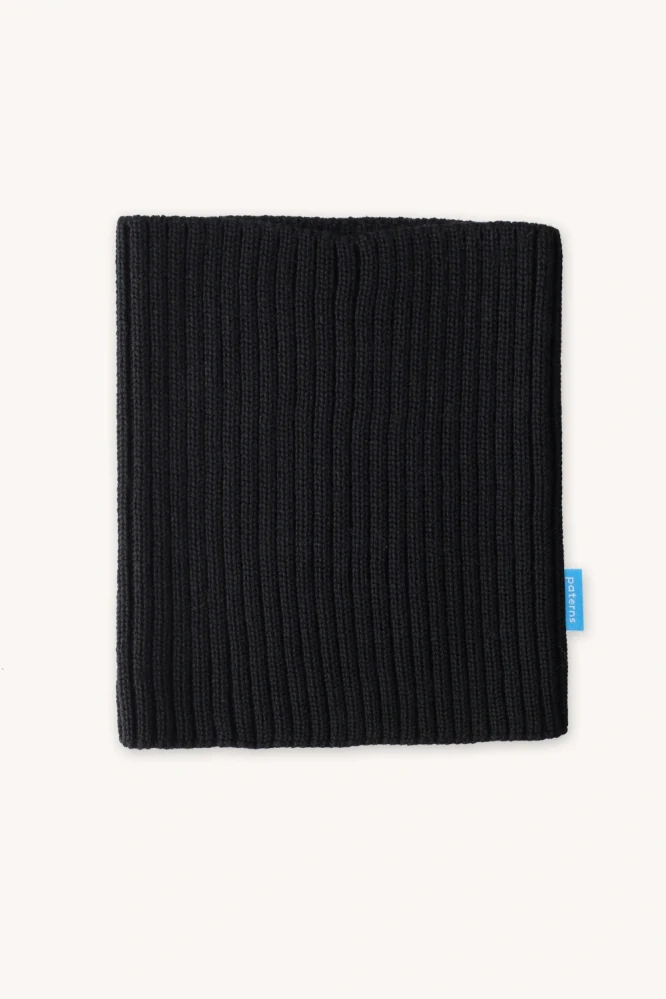 Černý nákrčník z merino vlny s žebrovaným prošitím.Tato silná, plná šála z merino vlny vás zahřeje i v mrazivých teplotách.