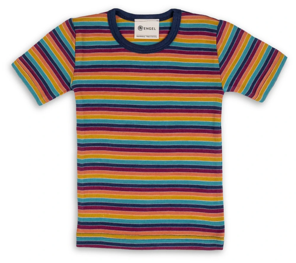 - Dětské tričko, krátký rukáv - merino vlna/hedvábí, barevný proužek